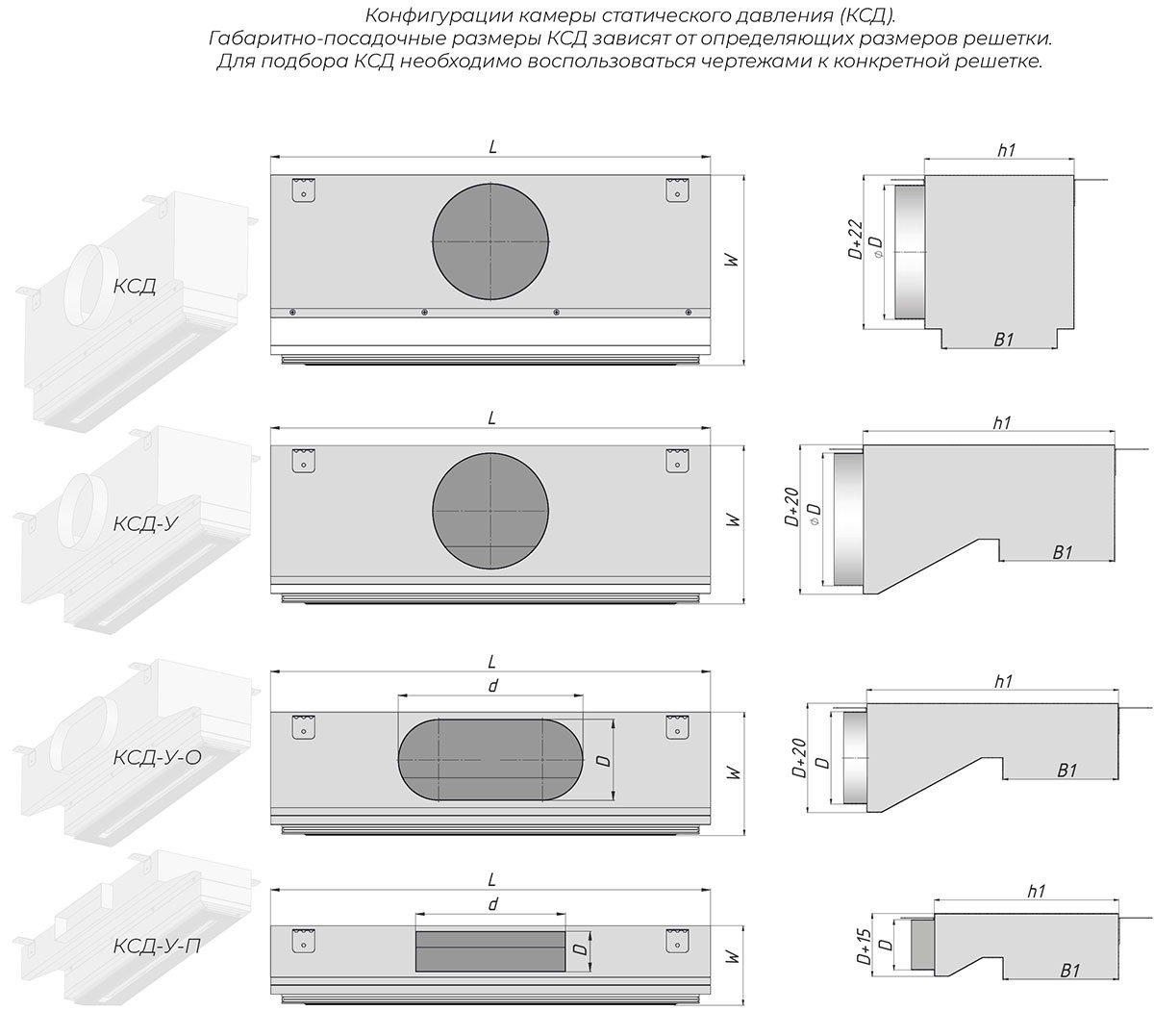 Камера статического давления (КСД/КСР) является элементом систем вентиляции и кондиционирования воздуха и используется для подключения щелевых диффузоров к воздуховоду.
