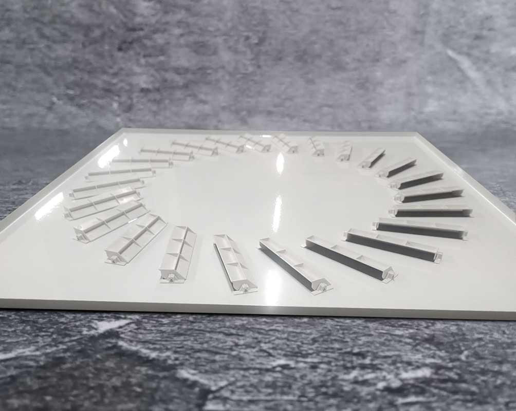 Изготавливается семь видов панелей отличающихся расположением ячеек. Регулировка положения угла поворота вставок для различных вариантов схем подачи воздуха осуществляется вручную тонким предметом с лицевой стороны панели. Фиксация вставок в показанных положениях обеспечивается конструкцией ячеек.