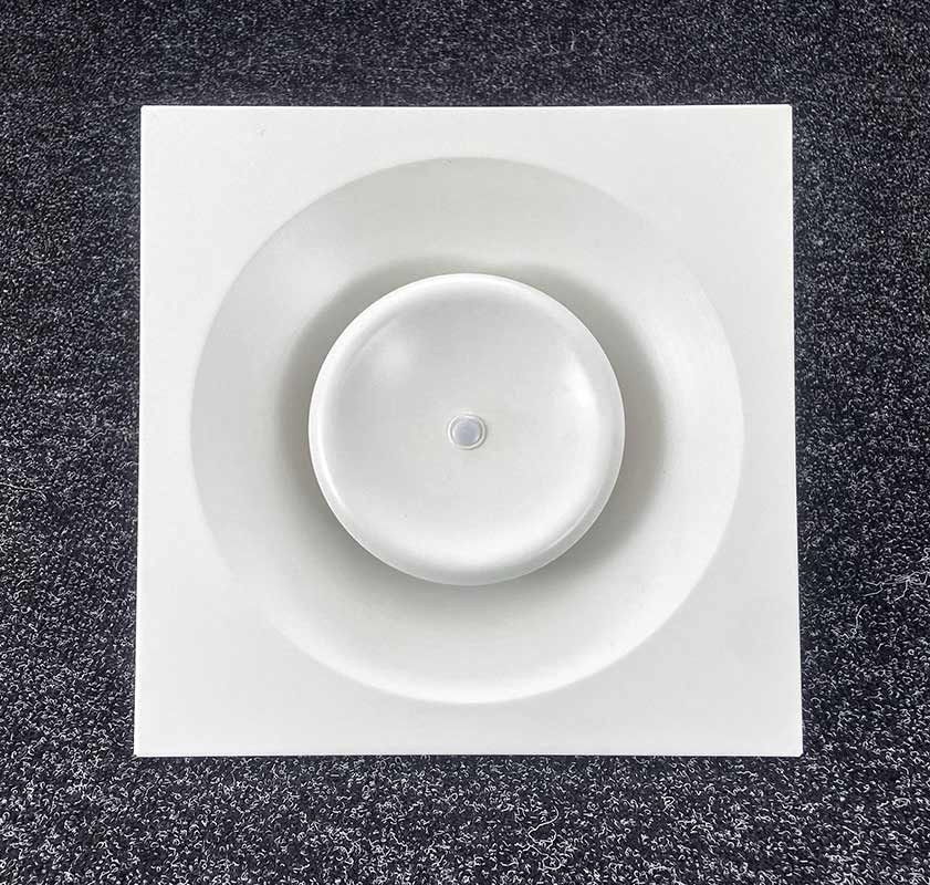 - Возможно изготовление диффузора с регулируемой центральной частью, что позволяет регулировать направление потока воздуха, а также при необходимости производить очистку и иметь доступ к воздуховоду или камере.